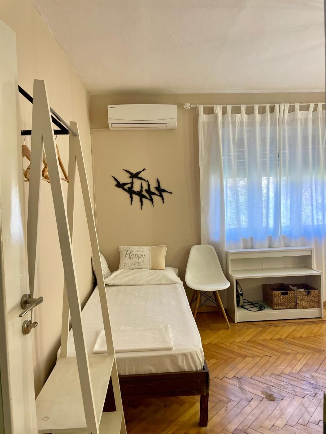 Two-Bedroom Apartment. Boasting a private entrance, this air-conditioned apartment features 1 living room, 2 separate bedrooms and 1 bathroom with a shower and a bidet. In the well-equipped kitchen, guests will find a stovetop, a refrigerator, an oven and a microwave. The spacious apartment features a washing machine, a wardrobe, a sofa, parquet floors, as well as a flat-screen TV with cable channels. The unit has 5 beds.